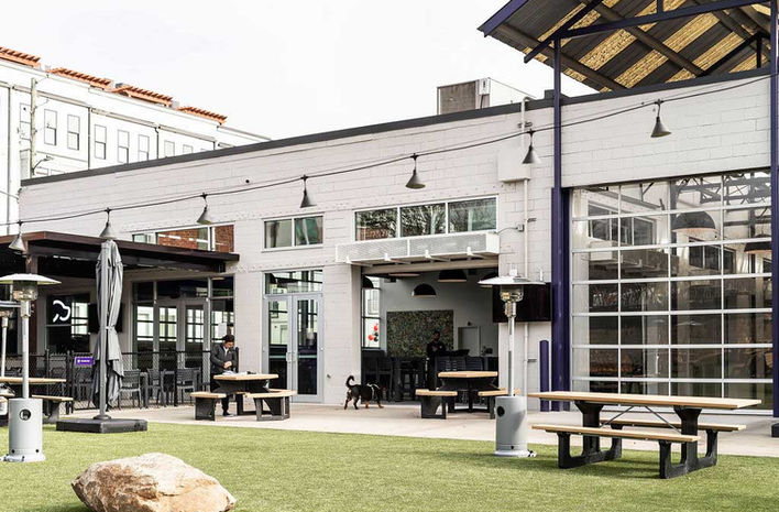 As this start-up continues to grow, one thing is for certain, dog facilities are no longer the standard fenced in, grassy areas of the past. Our most recent endeavor with Skiptown includes this new 44,000 square foot space near Pullman Yards in Atlanta, Georgia. Similar to the other two locations, Skiptown Atlanta includes 25,000 square feet of indoor and shaded outdoor areas, splash pad, daycare and boarding, dog training studio, grooming areas, 200 kennels, and drop-off valet service.
